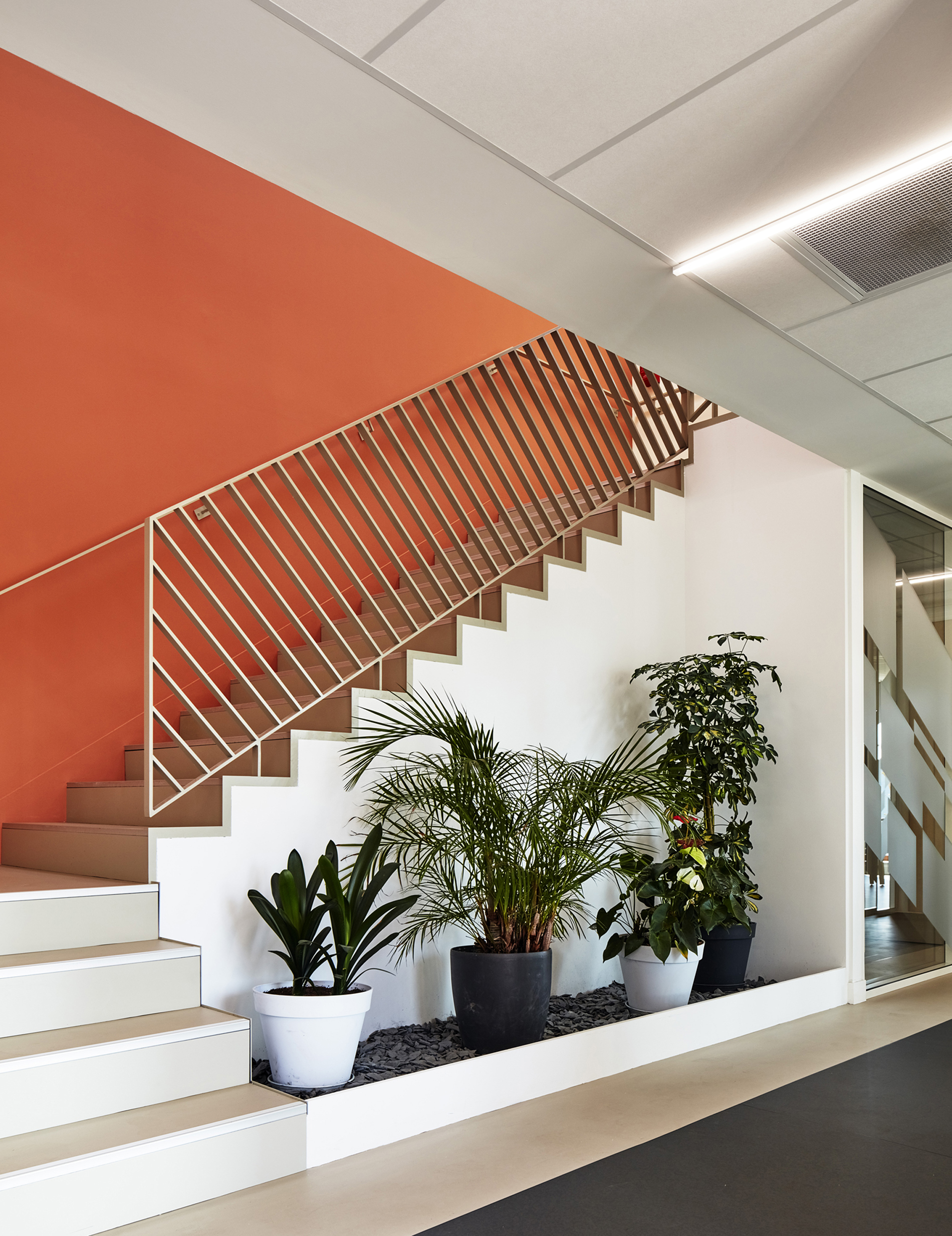 Les intérieurs sont soignés, avec un traitement particulier de l’escalier !