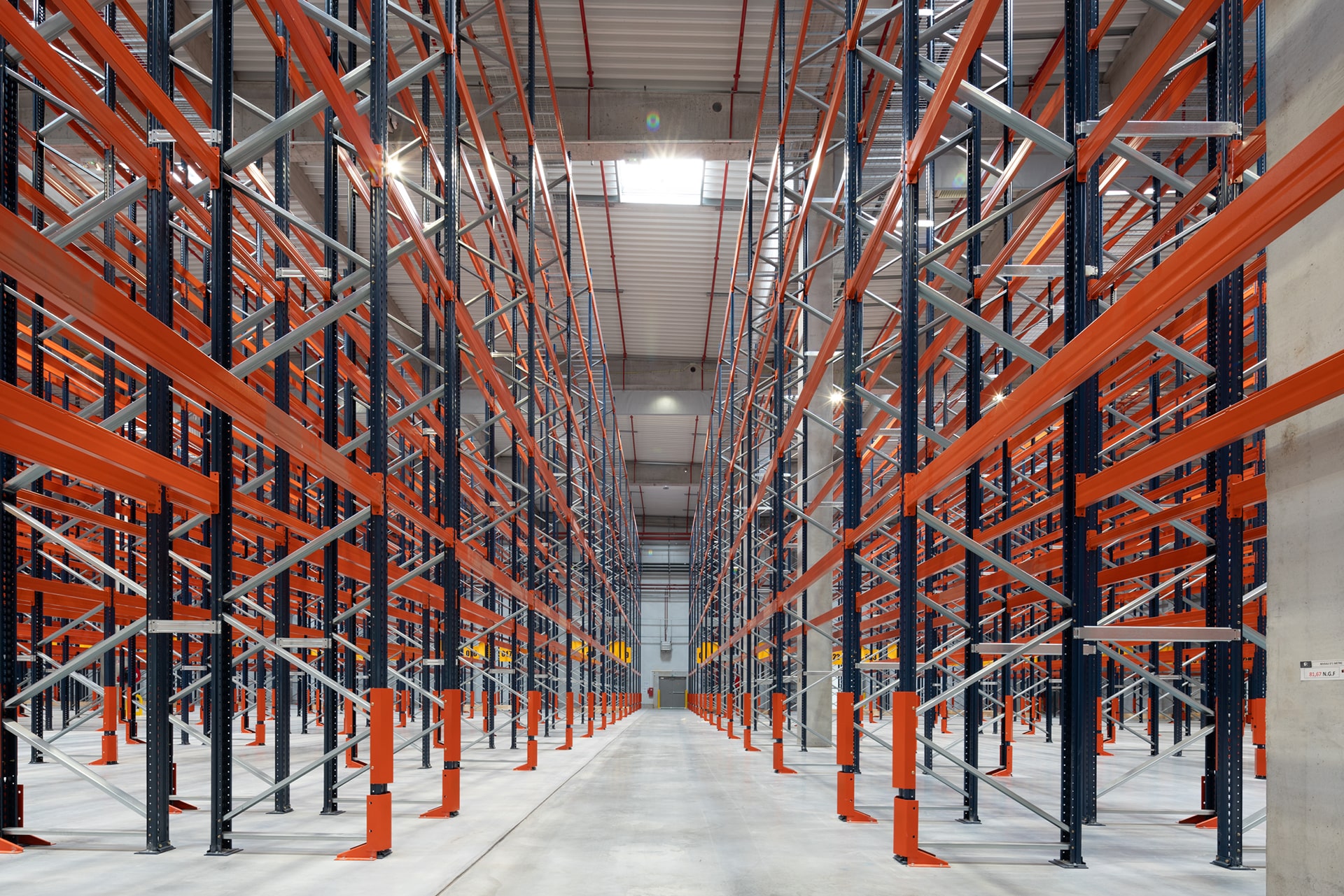 Le bâtiment comporte une halle de stockage composée de deux cellules d’environ 5 990 m² chacune, accessibles par 24 quais de réception et expédition. Le stockage est réparti dans les 2 cellules par un système de rackage d’une hauteur d’environ 11m, un local de charge d’une surface de 315 m², deux plots de bureaux d’accompagnement en R+1 d’une surface totale de 810 m² et des locaux techniques (TGBT, Transfo, chaufferie et sprinklage) avec une cuve de réserve d’eau pour le sprinklage.