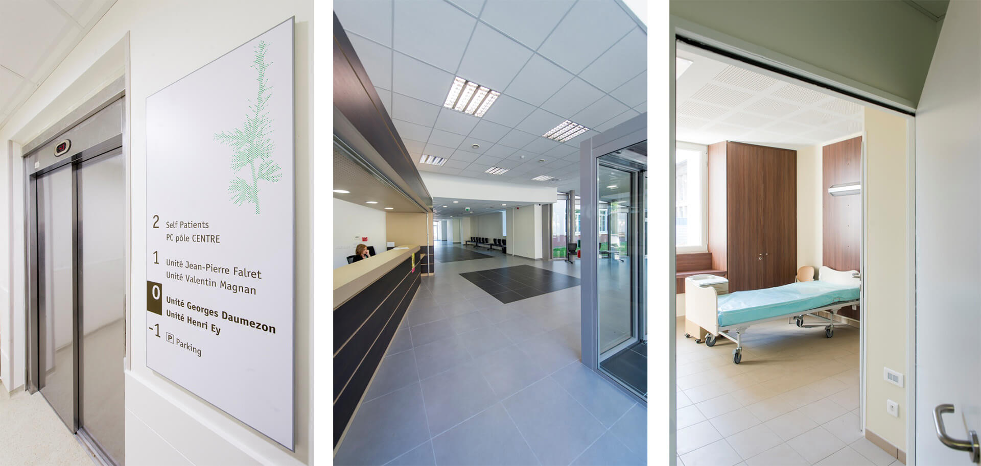 L’ensemble comprend environ 330 lits, en articulation avec les centres d’enseignement et de recherche, une zone d’électro-thérapie, une zone de traitement, une salle de réveil, les urgences et la logistique générale.