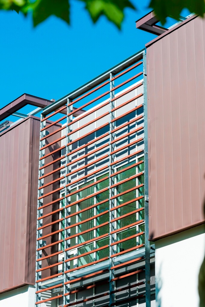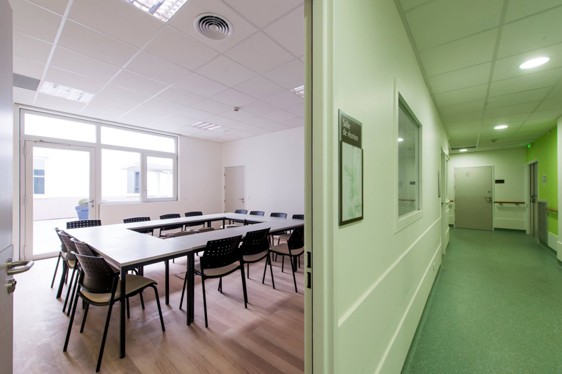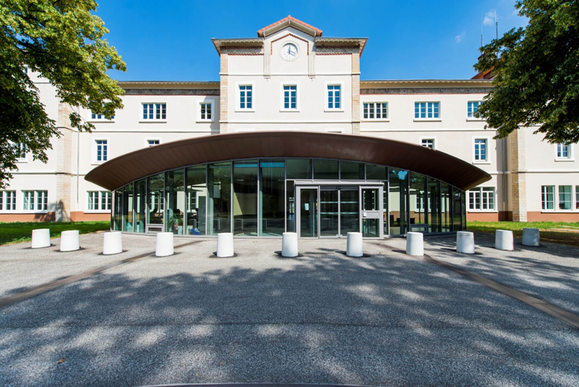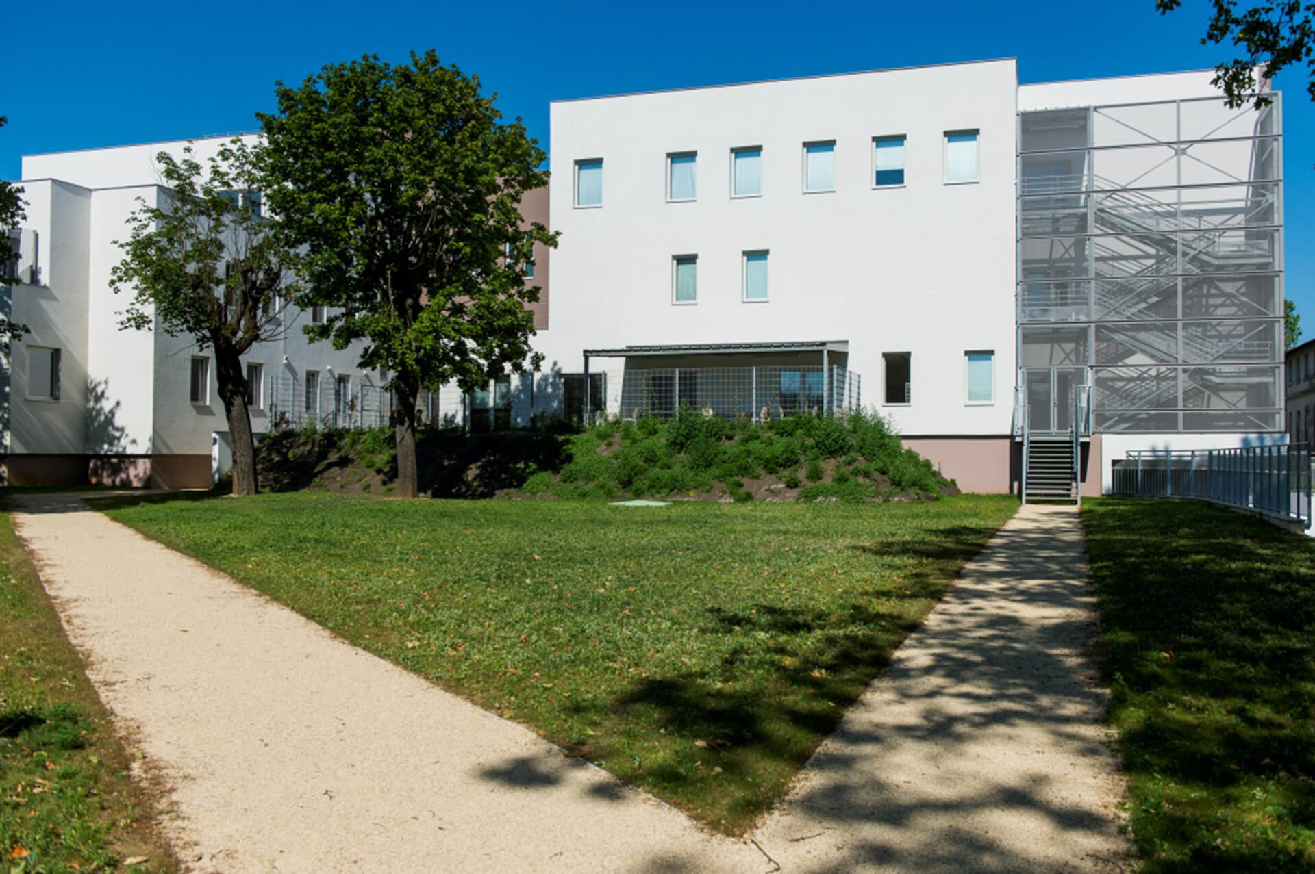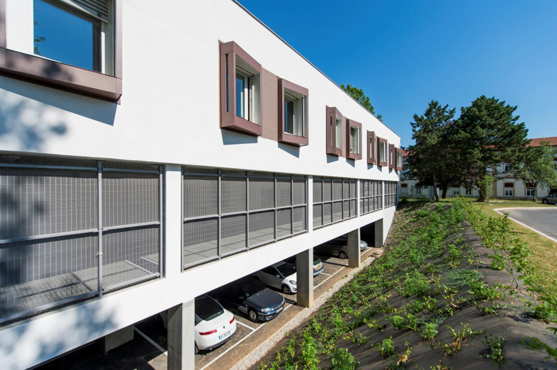 Le bâtiment est implanté dans un site historique contraint dont il assure la mise en valeur. Le projet s’inscrit dans une démarche HQE, l’établissement de santé visant le label BBC, cibles très performantes, comme la gestion de l’énergie, la maintenance et la pérennité des performances environnementales.