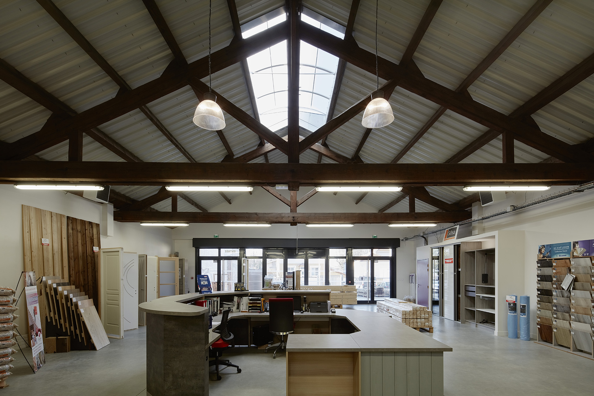 Aménagement d’un atelier en magasin, ainsi que réhabilitation d’un bâtiment servant de stockage en bureaux. Le programme comporte :