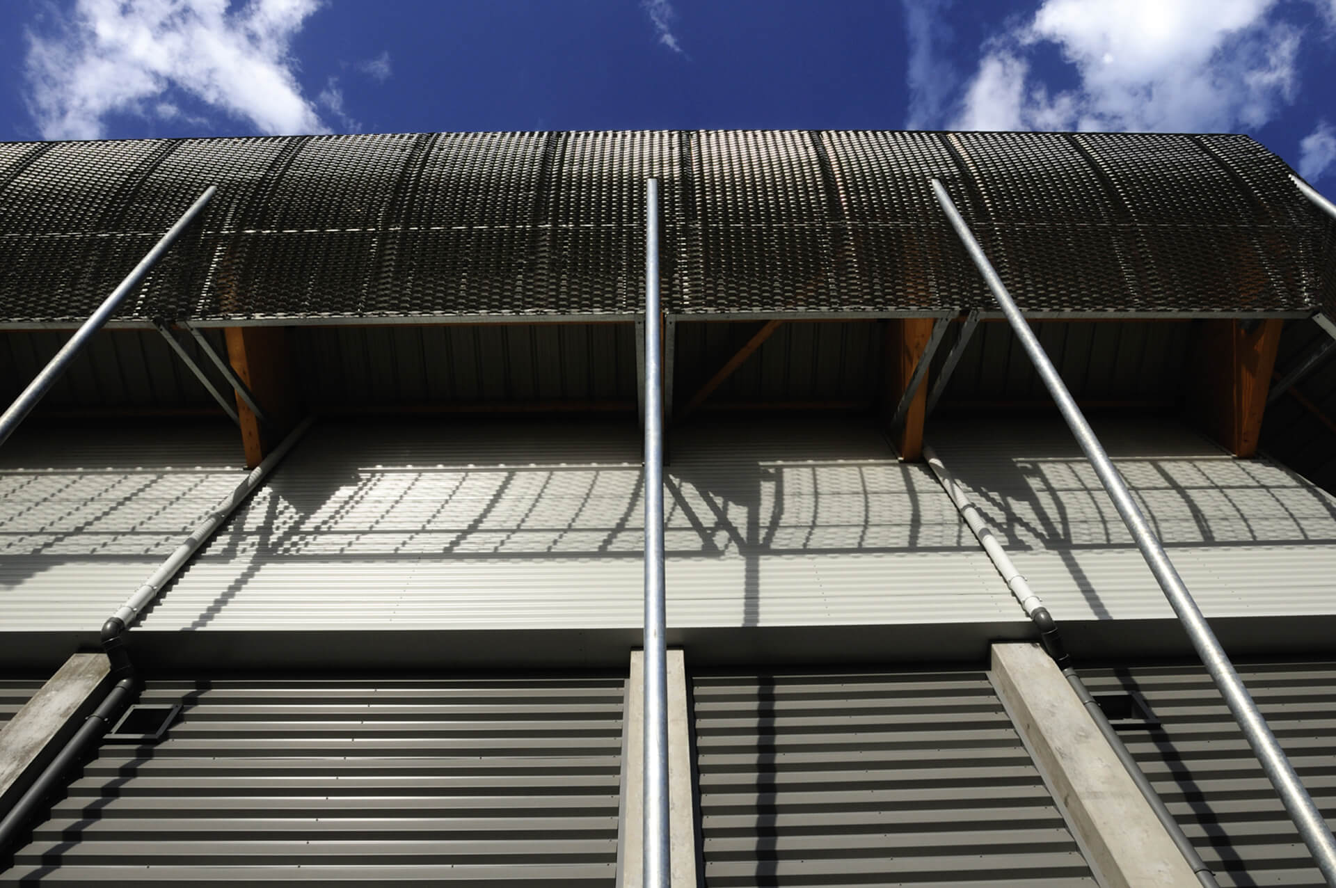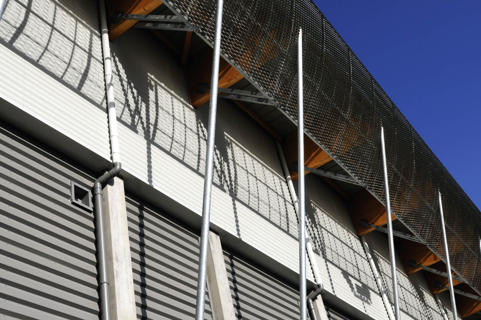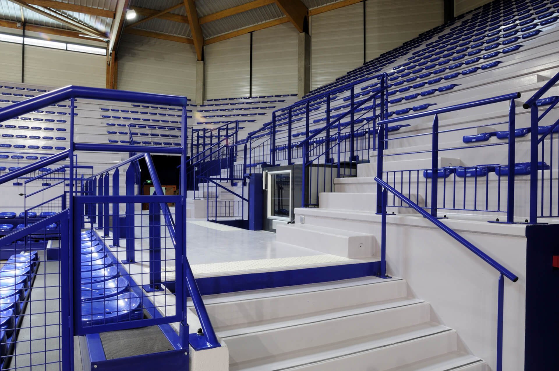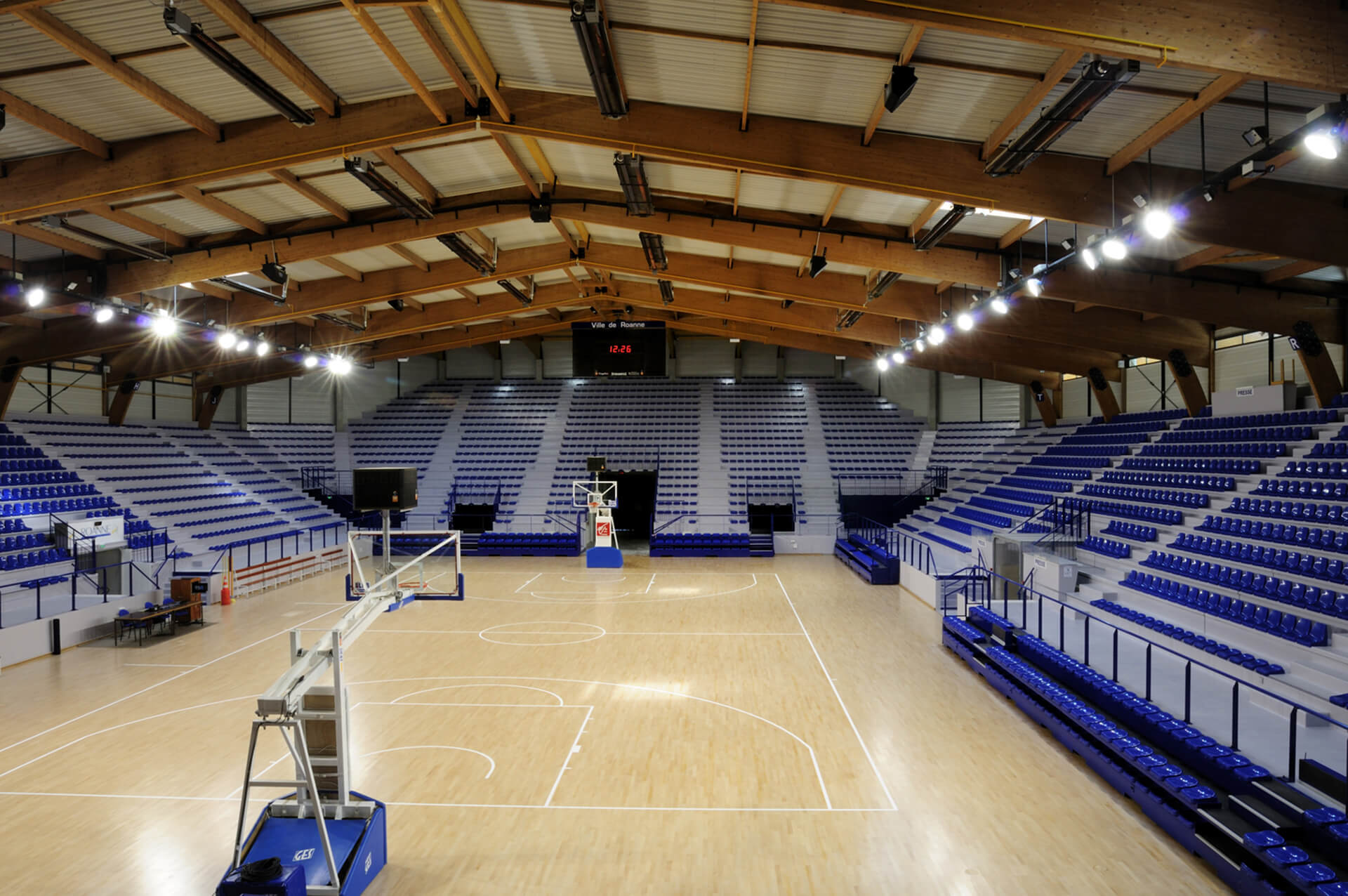 Agrandissement de la halle André Vacheresse de Roanne par la création de deux grandes tribunes derrière les panneaux.
