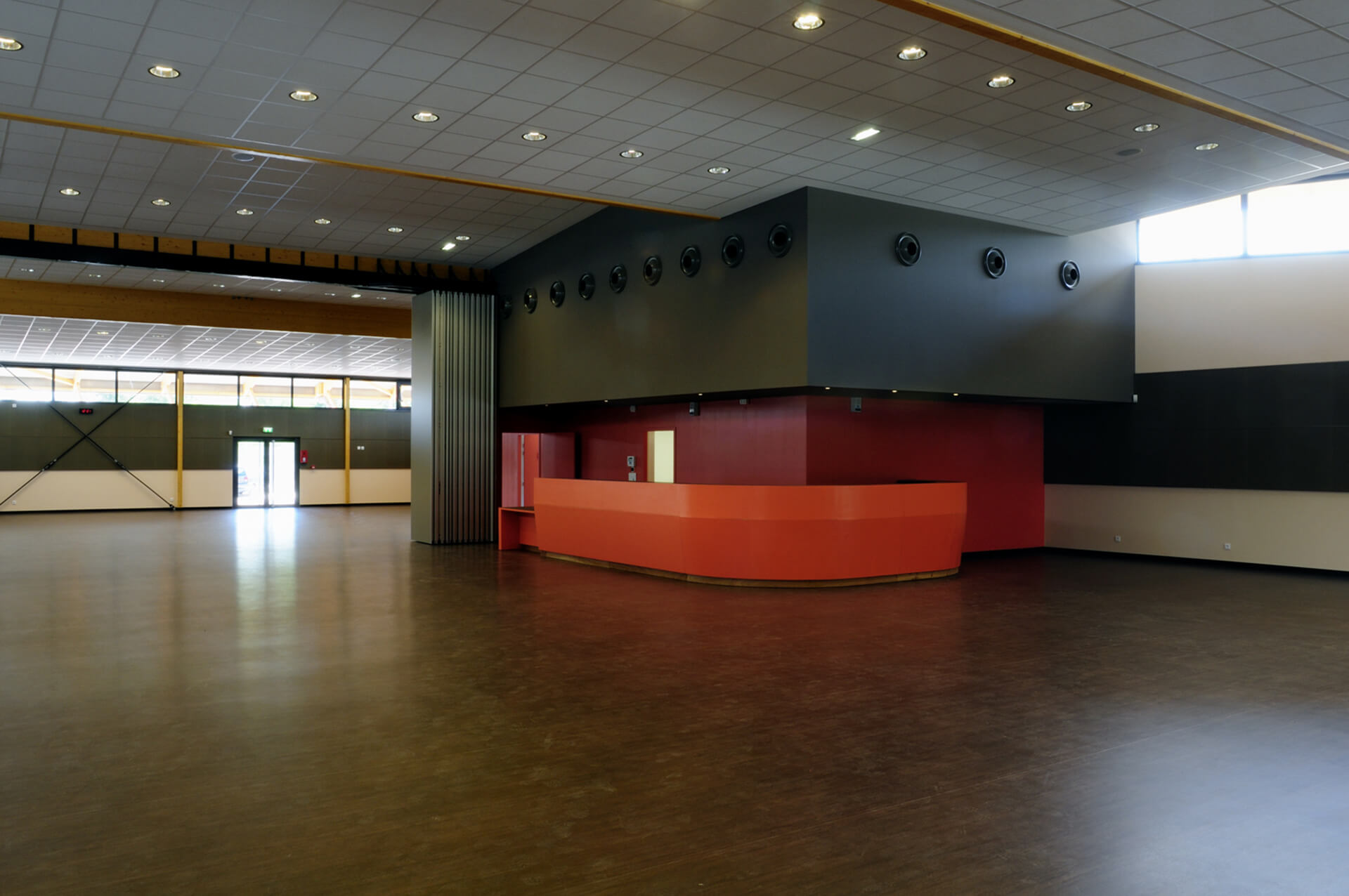 La halle relookée et agrandie compte 5 000 places, soit 1 700 de plus qu’initialement. Elle peut accueillir tous les sports collectifs en salle. A côté de la salle proprement dite, un espace partenaire de 700 m² a été créé. Bâtiment THPE.