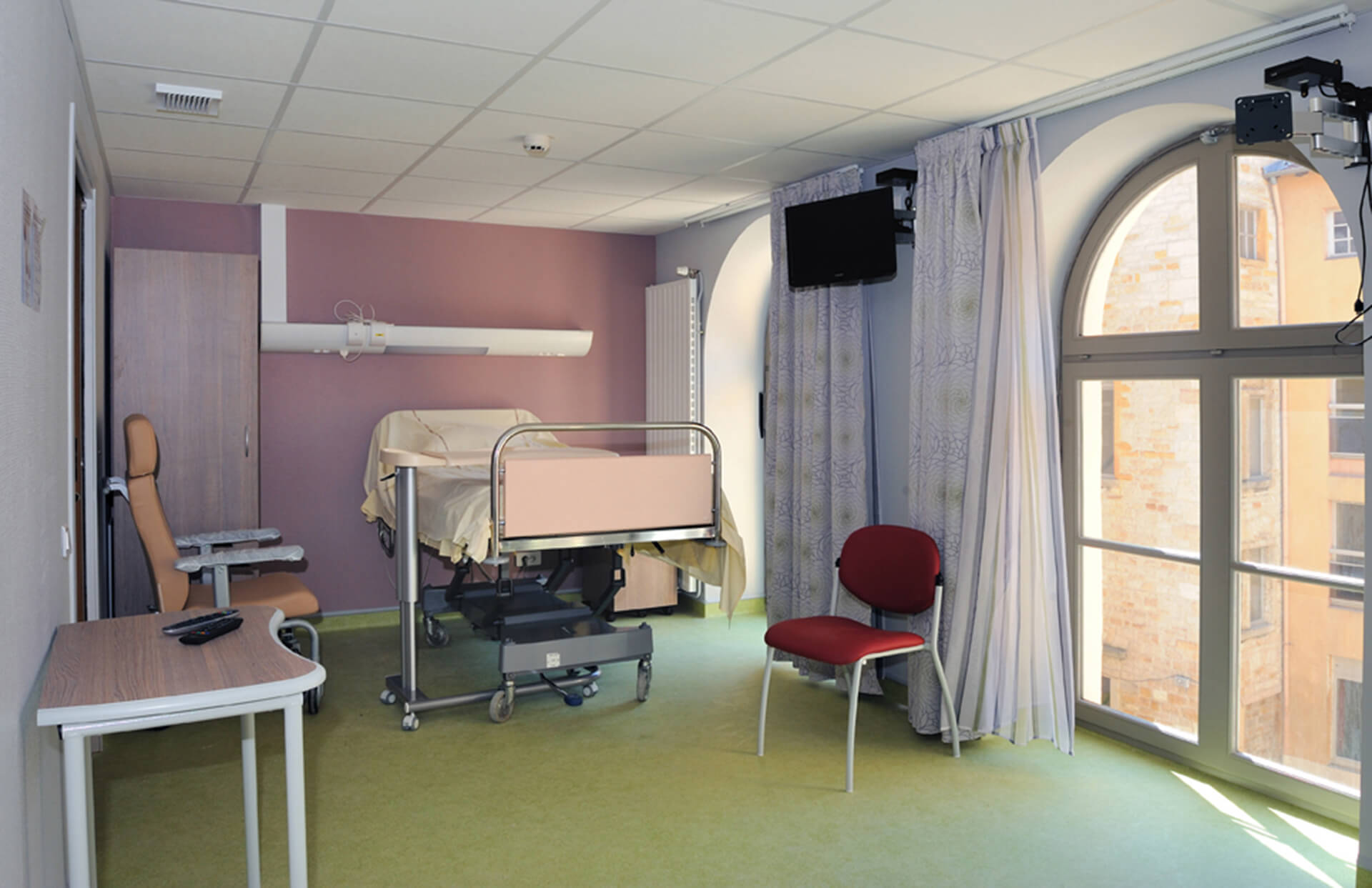 Le projet consistait à réhabiliter le bâtiment de l’ancien hôpital pour y implanter un nouveau service de soins de suite et réadaptation gériatriques de 25 lits, dont 10 lits consacrés à la prise en charge de patients Alzheimer ou apparentés.