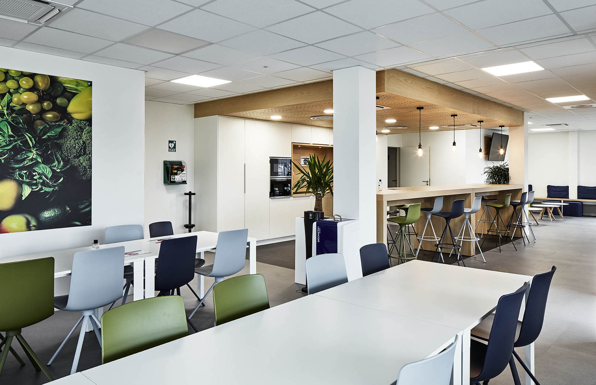 A travers cette réalisation, les ateliers 4+ ont souhaité proposer des espaces de bureaux et de travail disposant d’une véritable qualité d’usage et d’ambiance : tourné vers le sud et l’ouest, les surfaces s’orientent largement vers l’extérieur avec de larges terrasses que nous avons implantées au 1er étage, de façon à dégager une vue plus large sur les monts du Beaujolais.