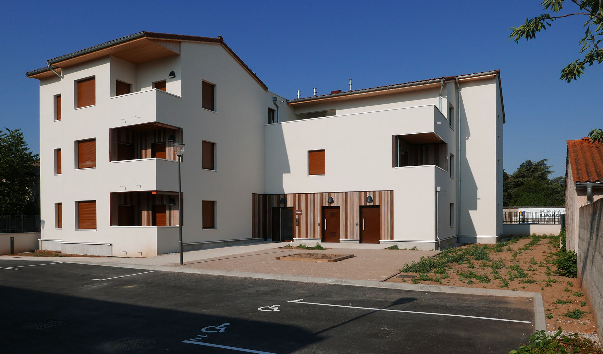 Construction de 16 logements hors site. Projet pilote pour le label E+C- : NF HABITAT HQE + Référentiel QEB Grand Lyon. Autoconsommation collective