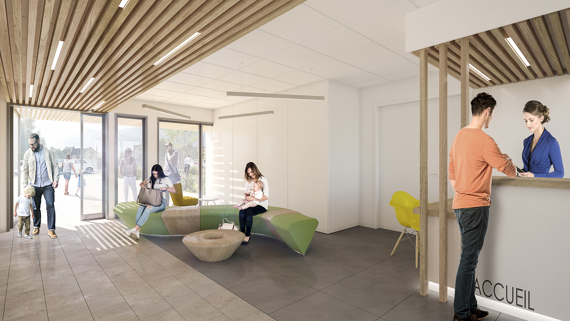 Construction d’un bâtiment comprenant des équipements d’intérêt collectif accessibles au public (Salle polyvalente, PMI) ainsi que des bureaux (administration de la MDD et les partenaires extérieurs). Nous avons basé notre recherche sur des formes innovantes en affirmant une modernité architecturale tout en respectant le cadre rigoureux d’une construction par système modulaire.