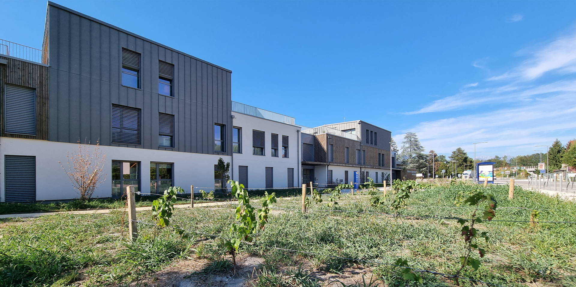 En toiture, des terrasses en platelage bois accessibles depuis l’intérieur du bâtiment sont intégrées dans le projet. Les employés pourront alors profiter de la vue donnant sur la commune de Barraux et son fort, tout en partageant un moment convivial dans un espace de détente agréable. La terrasse du R+2 accueillera un jardin potager conçu en pots hors sol posés sur le platelage bois. Les autres toitures inaccessibles sont végétalisées.
