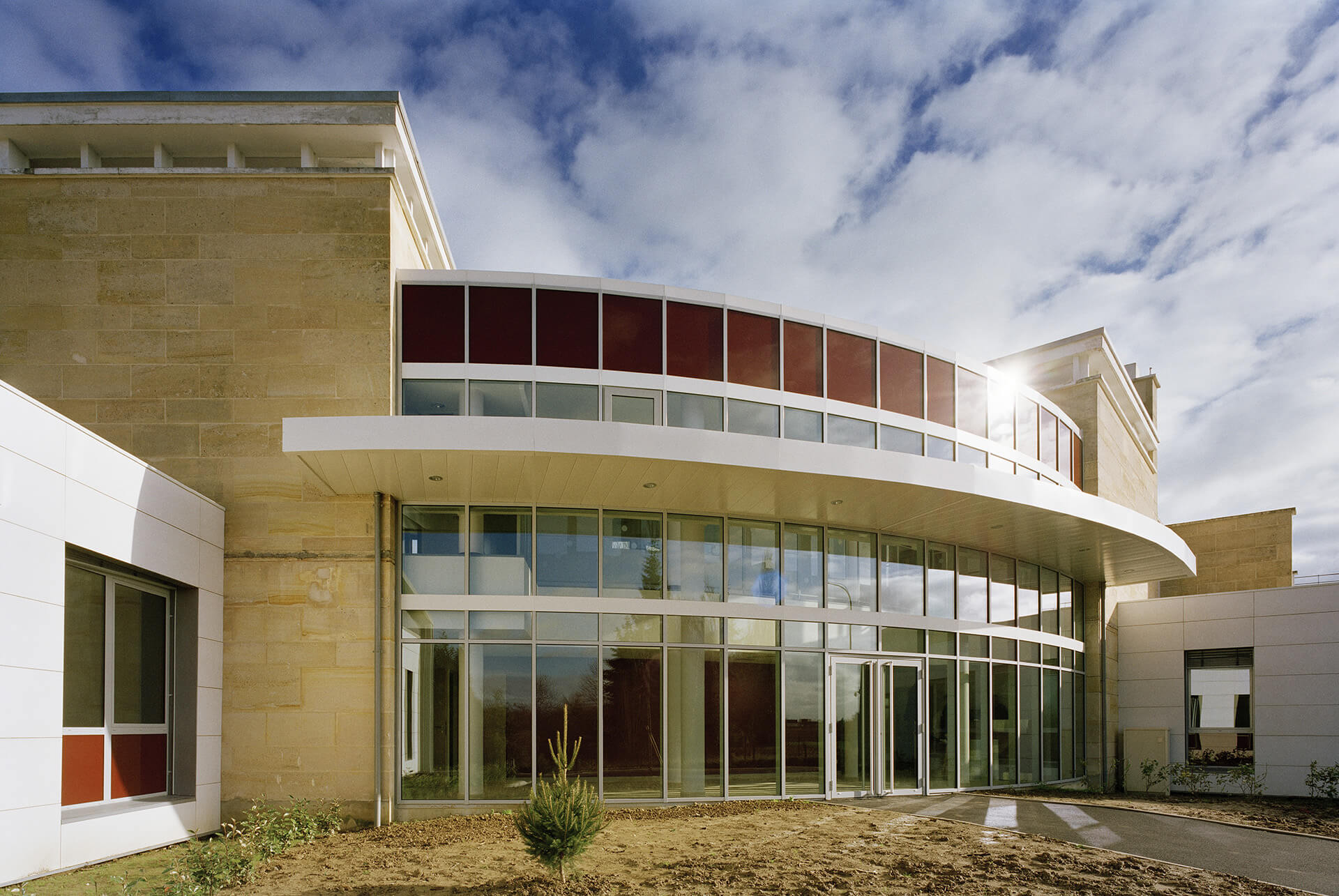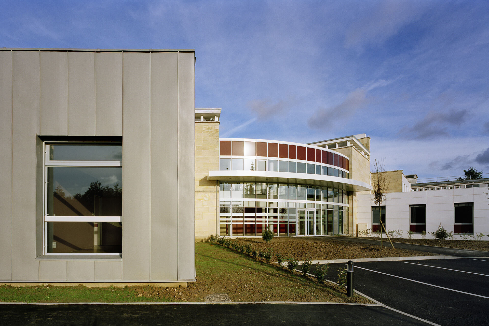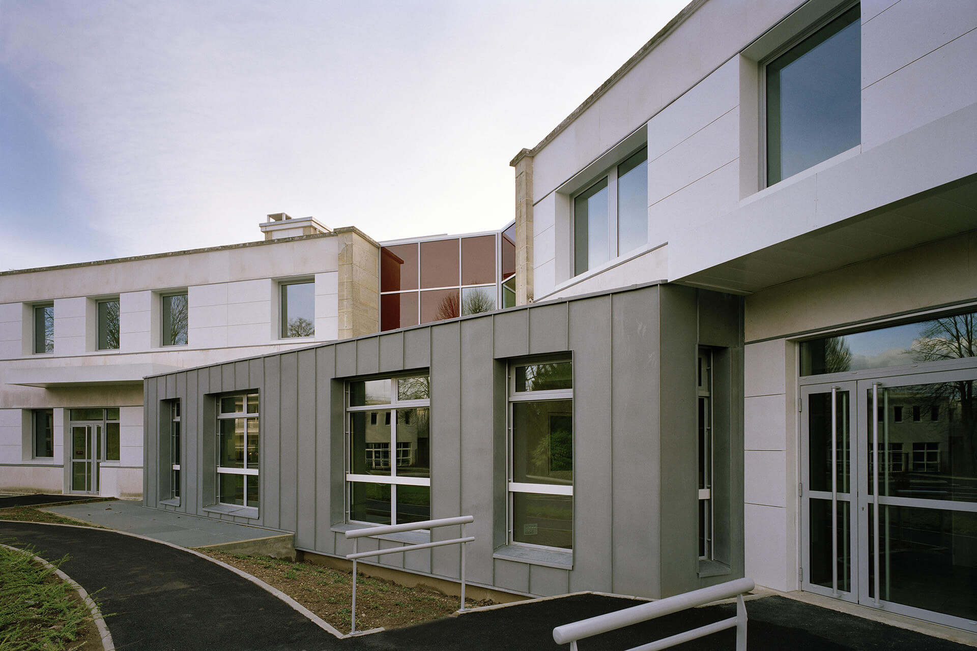 2 nouveaux volumes de plain pied, traités de façon contemporaine, abritent l’accueil de jour et les consultations externes, accessibles directement aux patients et aux familles.