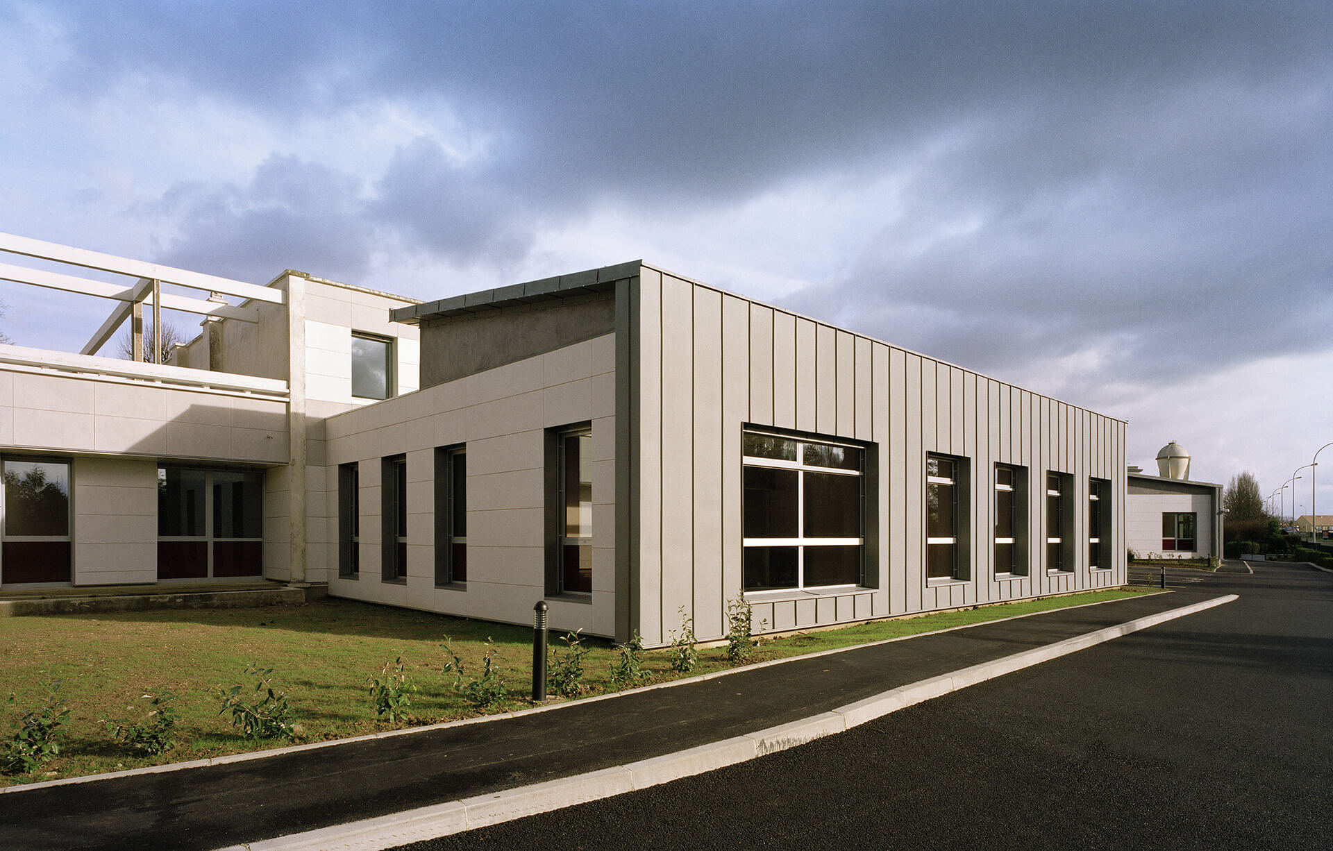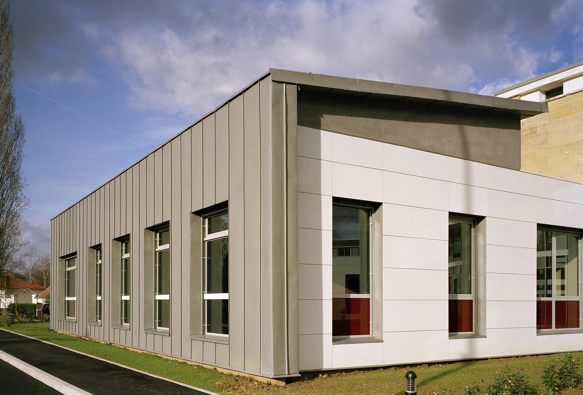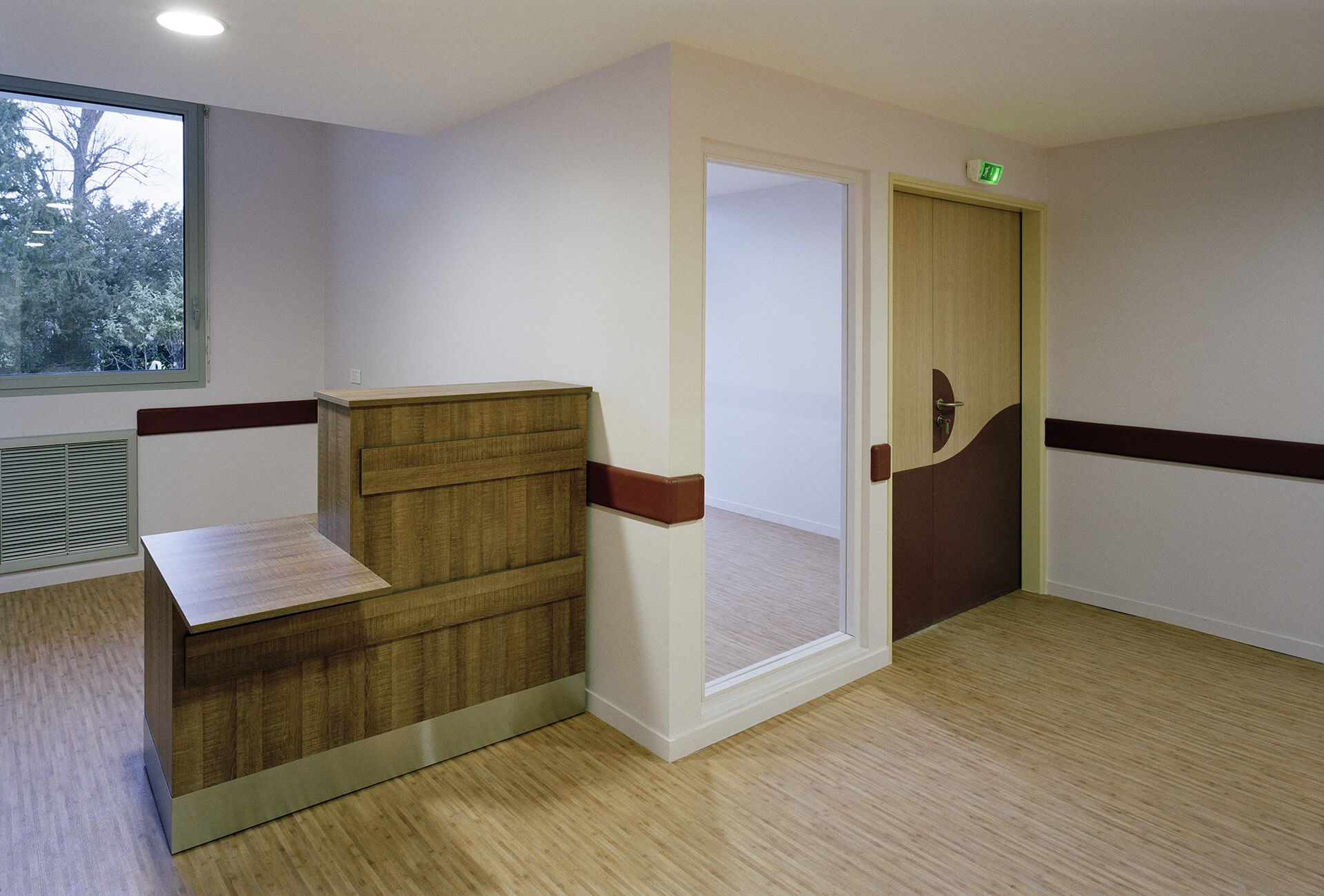 2 nouveaux volumes de plain pied, traités de façon contemporaine, abritent l’accueil de jour et les consultations externes, accessibles directement aux patients et aux familles.