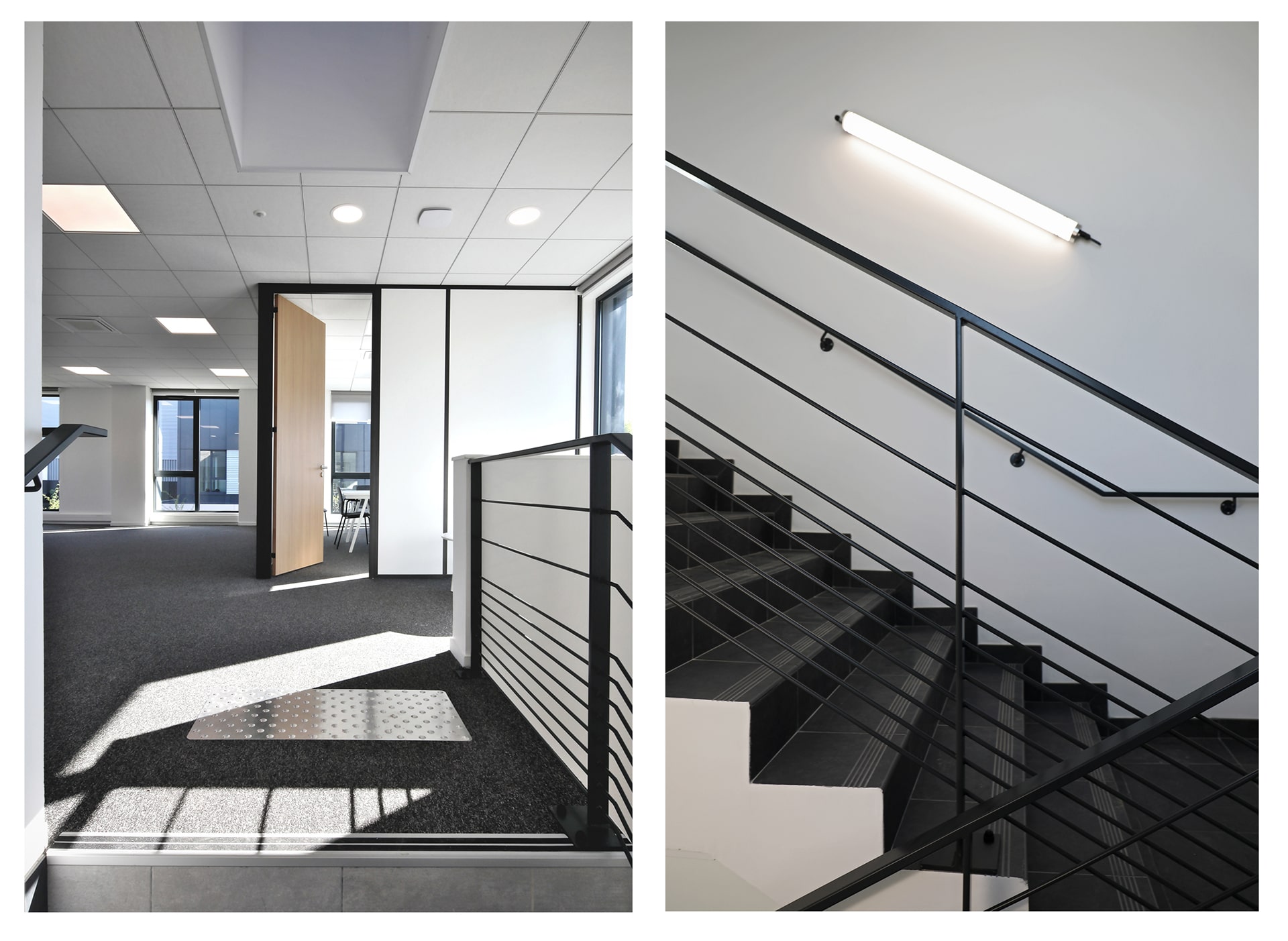 Le projet prévoir une grande modularité de surfaces pouvant s’adapter à des demandes locatives variées. La hauteur libre sous poutre des halles d’activités est de 8m avec un pourcentage d’éclairage naturel important afin de réduire l’éclairage artificiel.