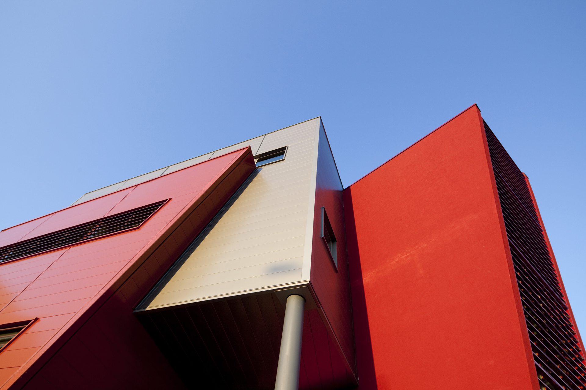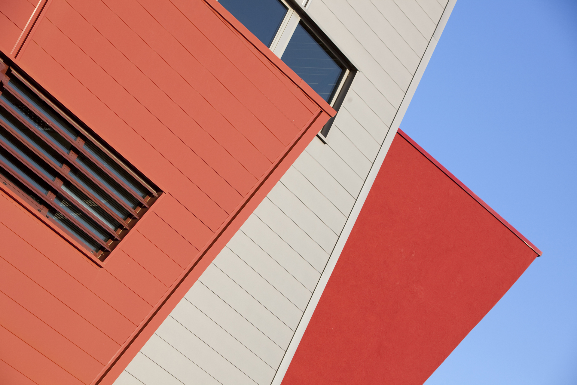 Les tons sable, ocre et brun des façades, ainsi qu’une volumétrie « déconstruite », visent à offrir une intégration forte. Les horizontales qui se fondent dans le paysage, sont entrecoupées d’évènements constitués par les bureaux, allégés par leurs formes complexes.
